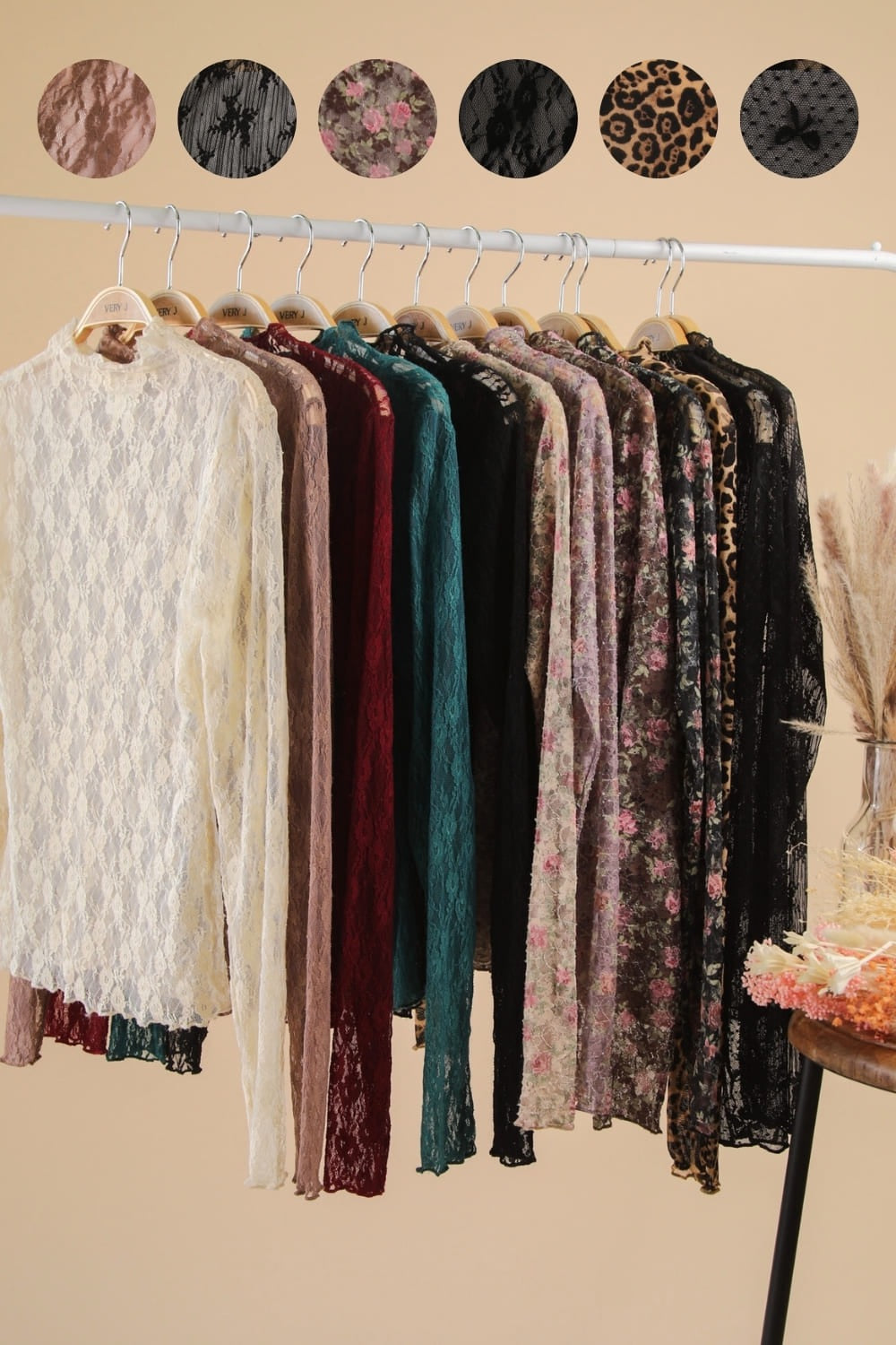 High Neck Fitted Sheer Mesh Lace Knit Top